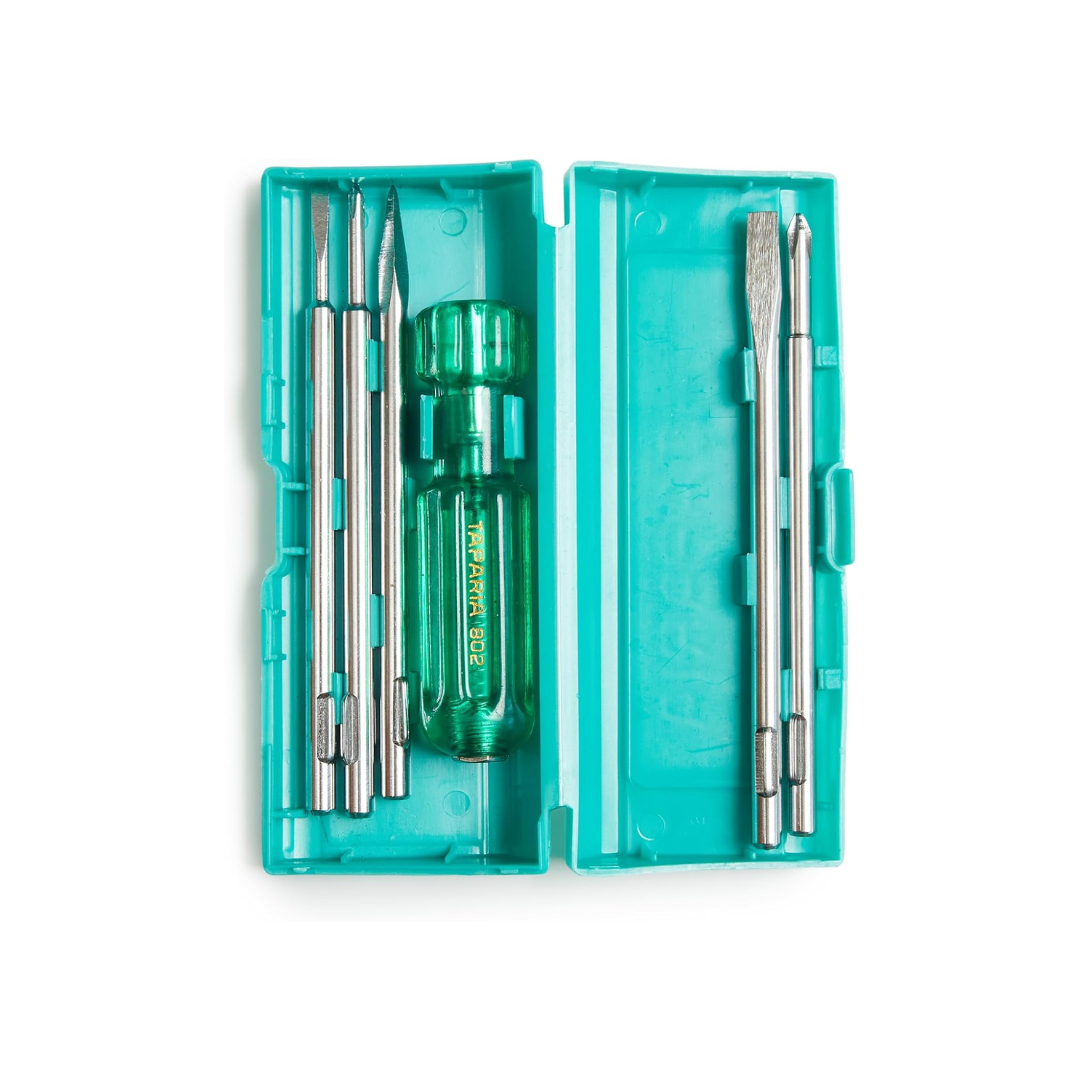 طقم مفكات تاباريا 802، 5 قطع، مثالي لجميع أعمالك اليدوية. الشفرة مصنوعة من فولاذ السيليكون والمنغنيز عالي الجودة، ومُقوّى ومُقسّى خصيصًا لمقاومة الانحناء والتآكل. يتميز بصلابة 55-58 HRC على طرفه، وهو مصمم ليدوم طويلًا، وممغنط لالتقاط البراغي الصغيرة من الأماكن الضيقة. احصل على طقم مفكات البراغي عالي الجودة هذا!