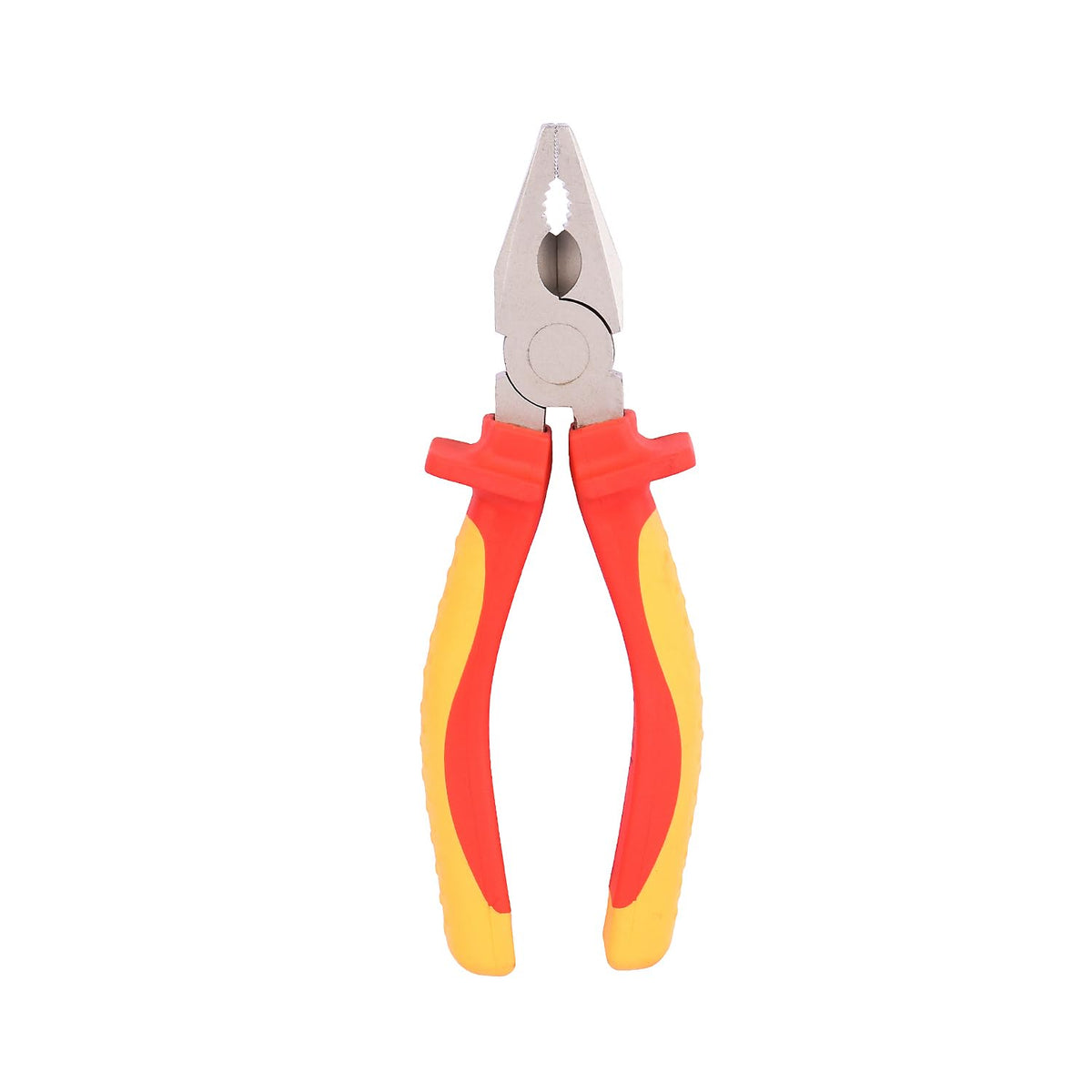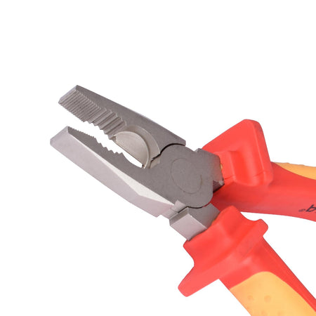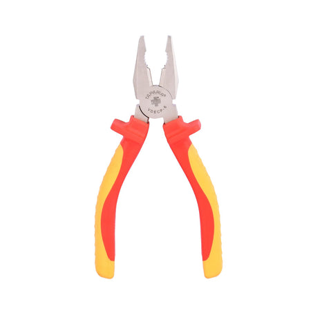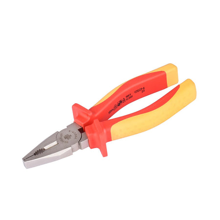 Taparia Combination Plier 6" - VDE is a robust plier made of high-grade steel, forged and heat-treated for superior performance. It features fully insulated plastic material sleeves for safe electrical working and excellent wire cutting capacity for soft and hard wires. Available with fully polished or black phosphated and bright polished head.