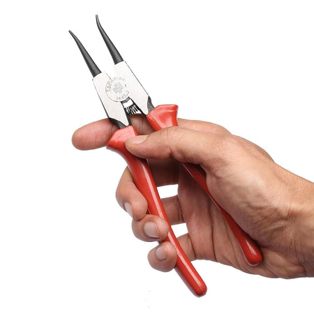 This Taparia External Straight Circlip Plier is made with high grade steel to ensure reliable performance. Its insulation provides safe electrical working, while the wire cutting ability is suitable for both soft and hard wires. This 7" circlip plier is available in either a fully polished head or black phosphated and bright polished head.
