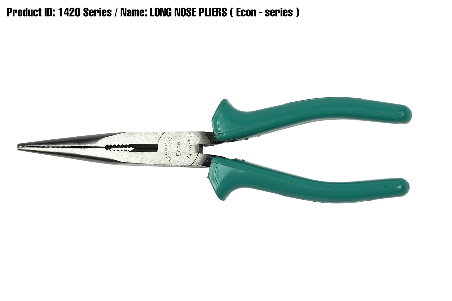 The Taparia Long Nose Plier 8" is a precise and reliable cutting tool designed for precision work. Crafted from accurately machined and heat treated jaws, it features strong gripping power, allowing it to securely hold even the thinnest wires and easily cut through fine wires.